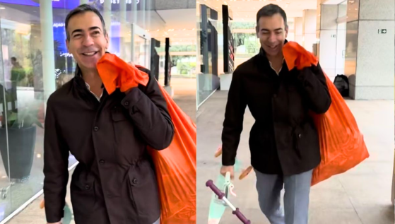César Tralli, de 54 anos, levou um saco cheio de brinquedos da filha, Manuella, de 6 anos, para doar aos